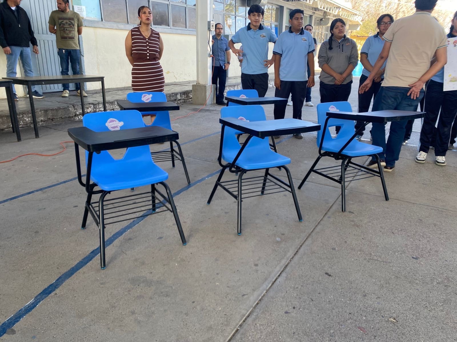 El Gobierno Municipal realizó la entrega de 35 butacas a la Escuela Secundaria Estatal 3032, ubicada en el centro de la ciudad, en un evento encabezado por el presidente municipal Jorge Aldana.