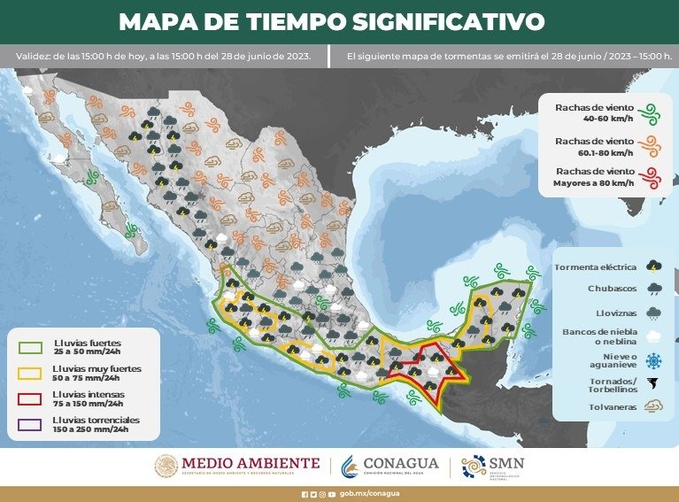 – La dependencia prevé además la presencia de lluvias y vientos fuertes en varias regiones del estado