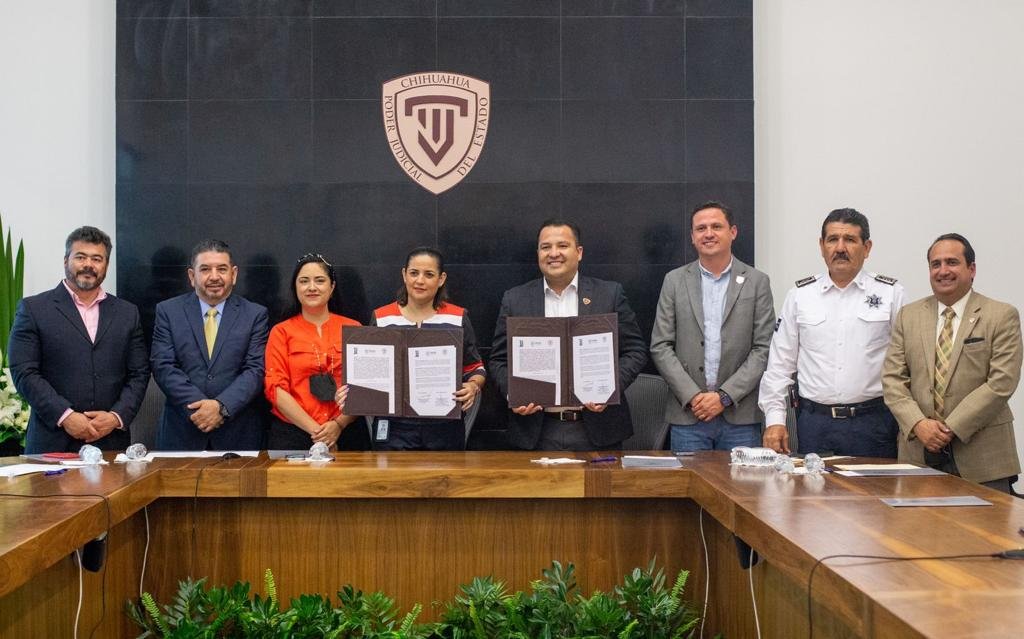 Este lunes el Presidente Municipal de Delicias, Jesús Valenciano, firmó con la presidenta del Tribunal Superior de Justicia, la Magistrada Myriam Hernández, un convenio que incluye capacitaciones a oficiales de seguridad, jueces cívicos y demás funcionarios para mejorar la atención de los delicienses.