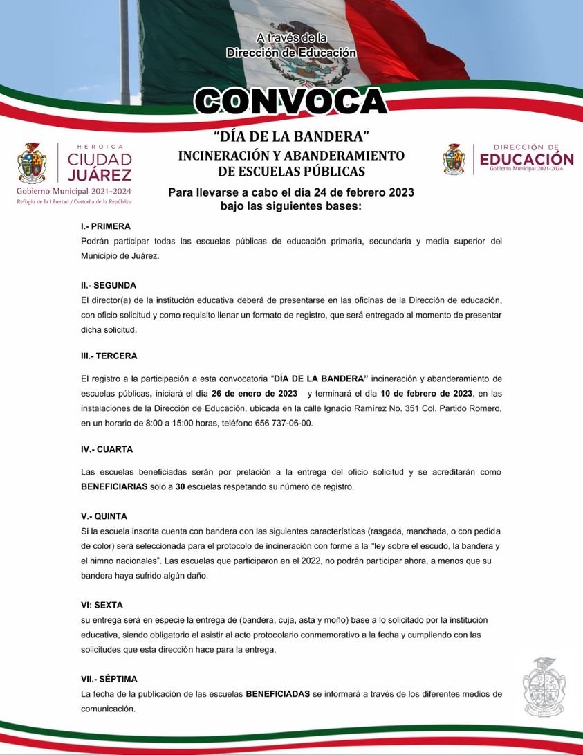 Para mayor información, es importante acudir a las oficinas de Educación Municipal o llamar al número telefónico 656-737-0600.