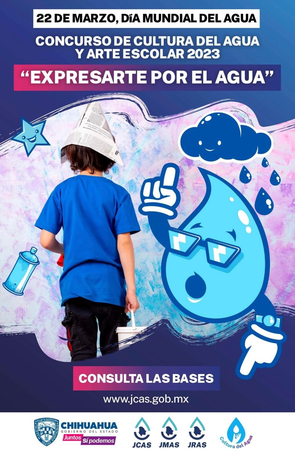 Esta actividad surge en el marco de la conmemoración del Día Mundial del Agua, que se celebra cada 22 de marzo, por lo cual la JCAS invita a la población infantil a participar en el concurso de murales al interior de sus instalaciones escolares, a fin de rescatar estos espacios a través de la participación de jóvenes talentos que plasmen la importancia del cuidado y conservación del agua.