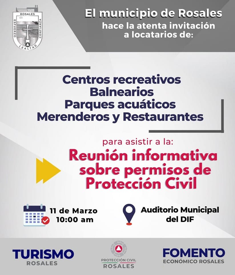 El municipio de Rosales realizó la invitación a la reunión informativa sobre permisos de protección civil.
