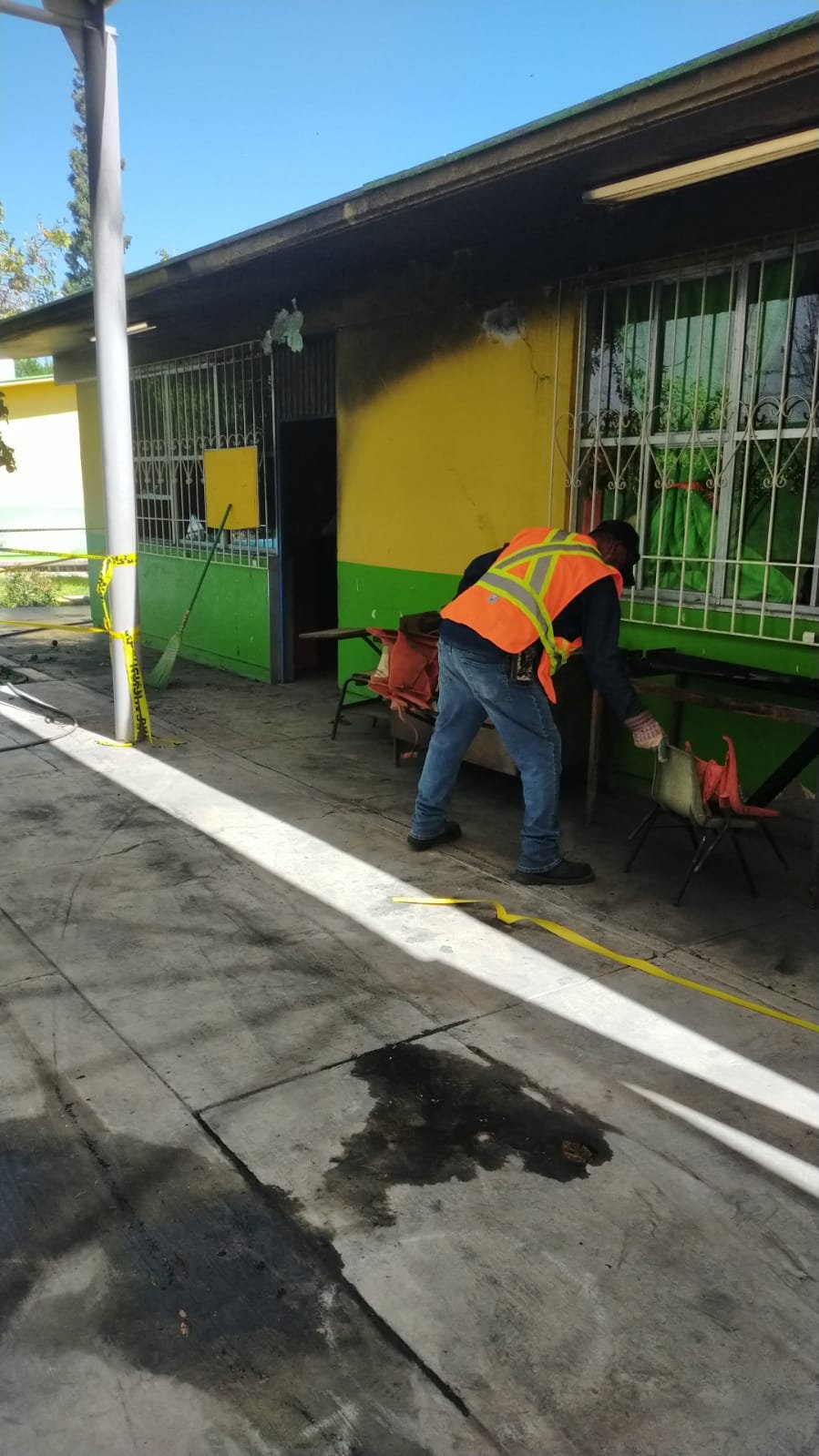 Luego de suscitarse el incendio en el Kínder Agustín Melgar del municipio de Meoqui, Gobierno Municipal, padres de familia y docentes trabajan en conjunto para rehabilitar el preescolar, donde actualmente realizan trabajos de limpieza, además de atender peticiones de instalación de luminarias.