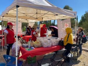 Margarita Macias, vicepresidenta del consejo de Cruz Roja, informó que se encuentran en el panteón municipal vendiendo lonches, donas azucaradas, refrescos y aguas en beneficio de la institución.