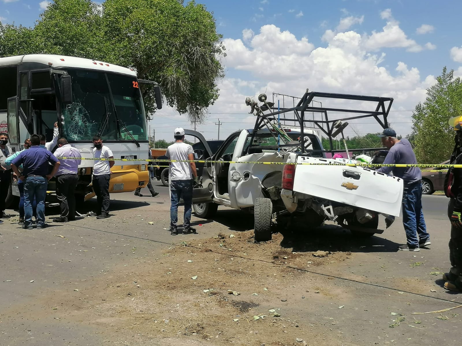 El percance tipo choque ocurrió cuando un autobús de pasajeros de la empresa autotransportes rápidos delicias, con numero económico 22, proveniente de la capital del estado coalicionó contra una camioneta tipo pick up, marca Chevrolet, color blanca.