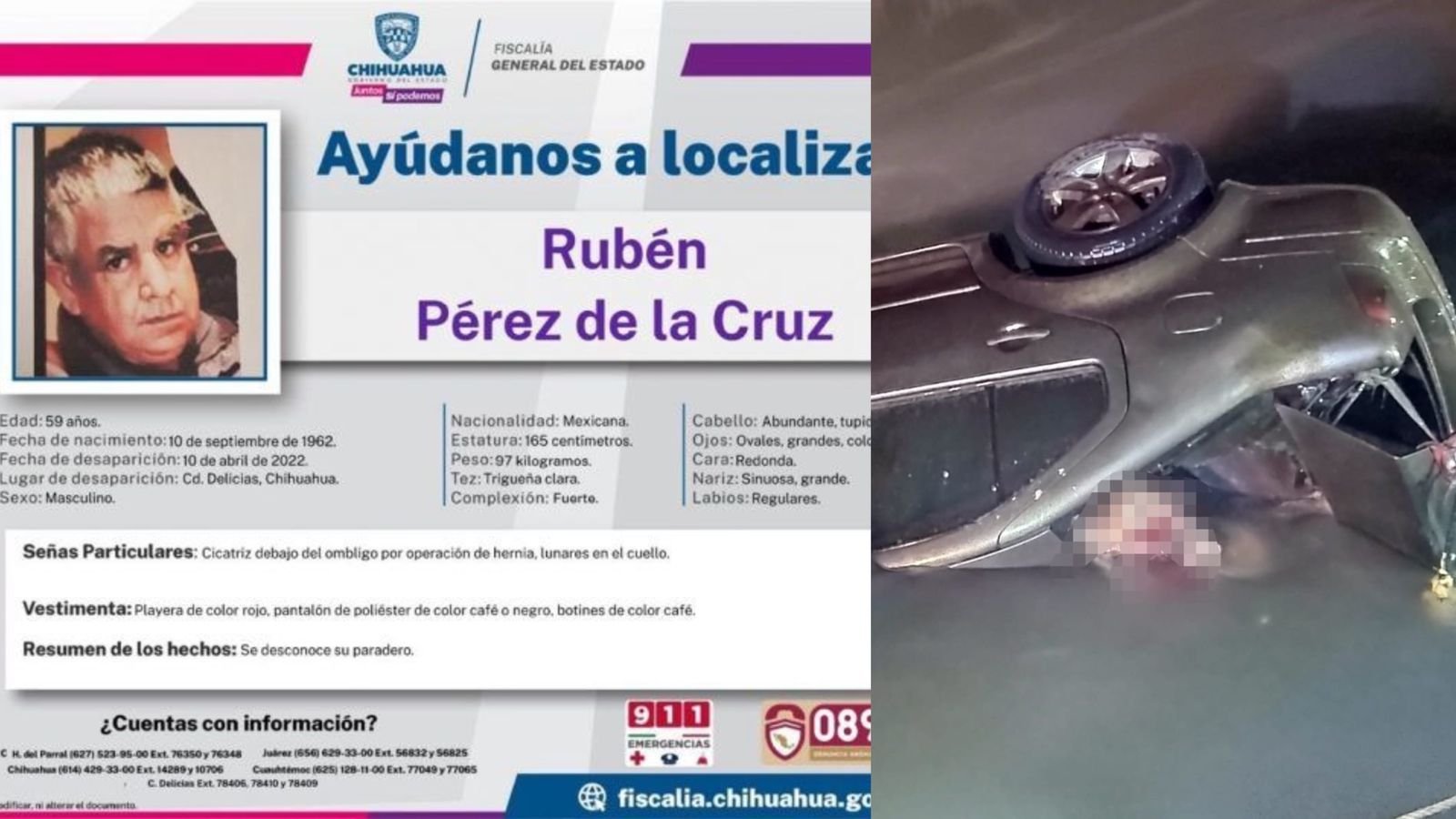 Luego del hallazgo de un cuerpo en estado de descomposición dentro de un vehículo en el canal de Estación Consuelo, se dio a conocer que las placas de circulación, el modelo y la línea del auto coincide con el de Rubén Pérez de La Cruz, quien fue reportado desaparecido en el mes de abril.