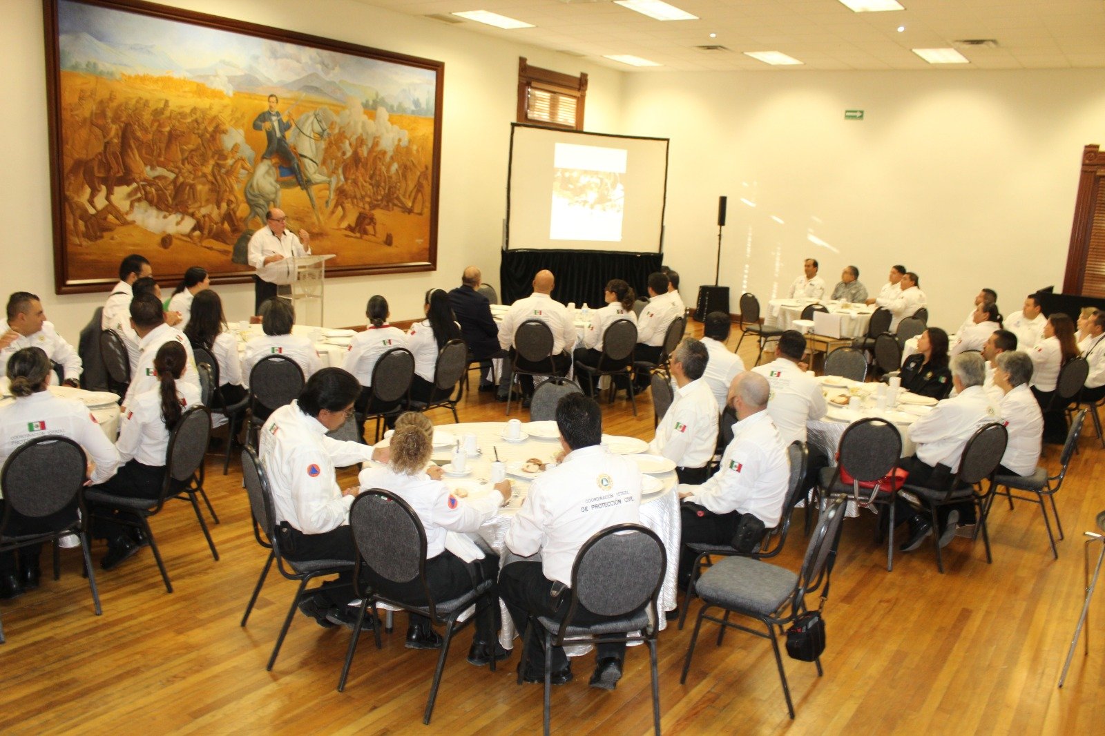 En el cierre de las actividades de la Semana Estatal de Protección Civil, personal de esa dependencia convivió en un desayuno celebrado en el Salón Sacramento de Palacio de Gobierno, donde el escritor Luis Alfredo Uranga López impartió la charla “Un héroe entre nosotros”.