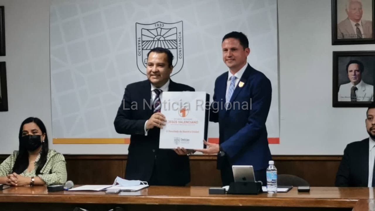Jesús Valenciano, presidente municipal de Delicias, entregó esta tarde su primer informe de Gobierno ante el ayuntamiento y la ciudadanía en general.