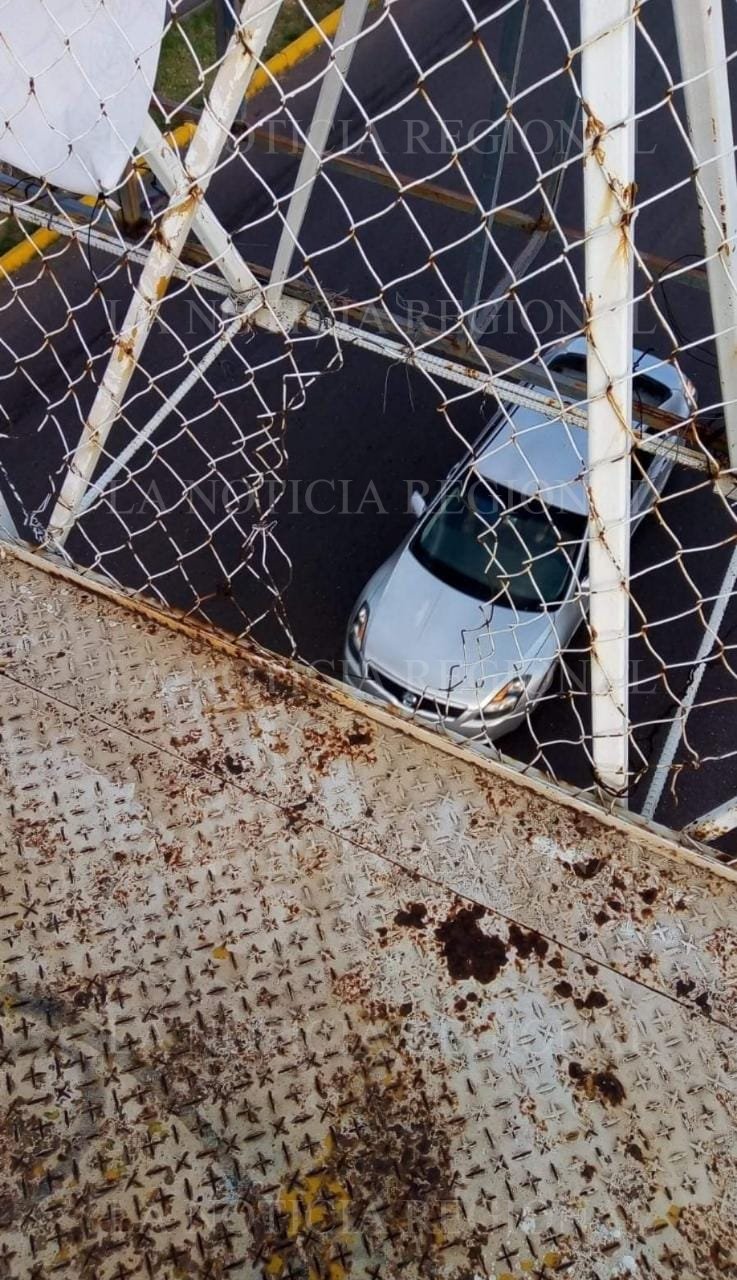 En el lugar se puede observar cómo la malla protectora se encuentra dañada y desoldada en varios extremos, además de la plataforma metálica donde en algunos tramos está muy flexible.