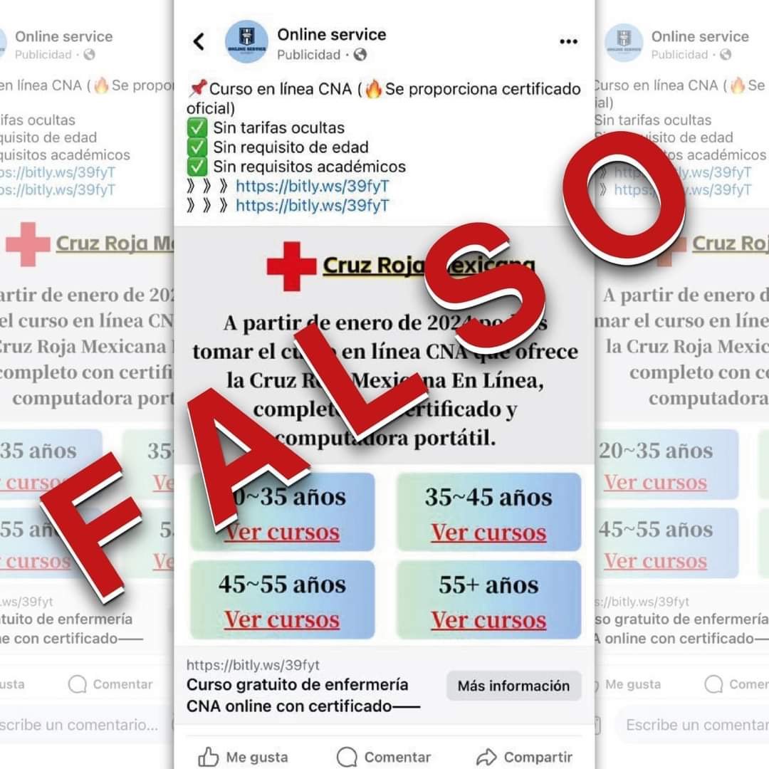 Señaló que estas páginas y cursos son totalmente falsos y las únicas capacitaciones certificadas que ofrecen las hacen por medio de las páginas oficiales de Cruz Roja delegación Chihuahua.