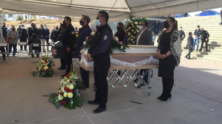 En una ceremonia fúnebre encabezada por el Fiscal General, César Augusto Peniche Espejel y el titular de la Agencia Estatal de Investigación, Comisario Álvaro Cuauhtémoc Serrano se brindó un homenaje póstumo a los elementos caídos en cumplimiento del deber, Alejandro Venzór Fernández y Otoniel Zarzosa Barraza.