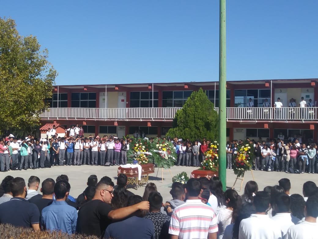 Camargo.- La mañana de este lunes, el luto se apoderó de dos familias y de la comunidad estudiantil del CBTis 143, donde compañeros, ex compañeros, maestros y familia, acudieron a despedir en una emotiva ceremonia, al interior del plantel.