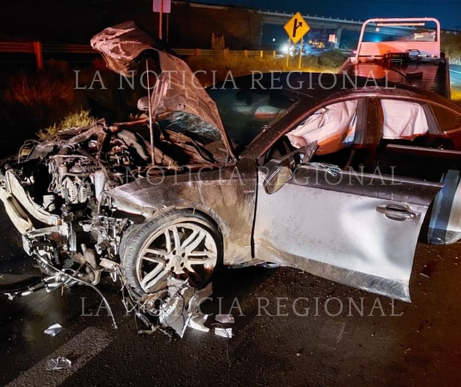 Un auto de lujo de la marca Audi fue abandonado en carretera después de ser destrozado en un choque.
