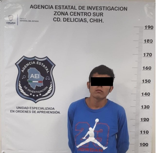 Policías de la Agencia Estatal de Investigación adscritos a la Fiscalía de Distrito Zona Centro en el municipio de Delicias, detuvieron a una persona que aparece como probable responsable del delito de robo agravado.