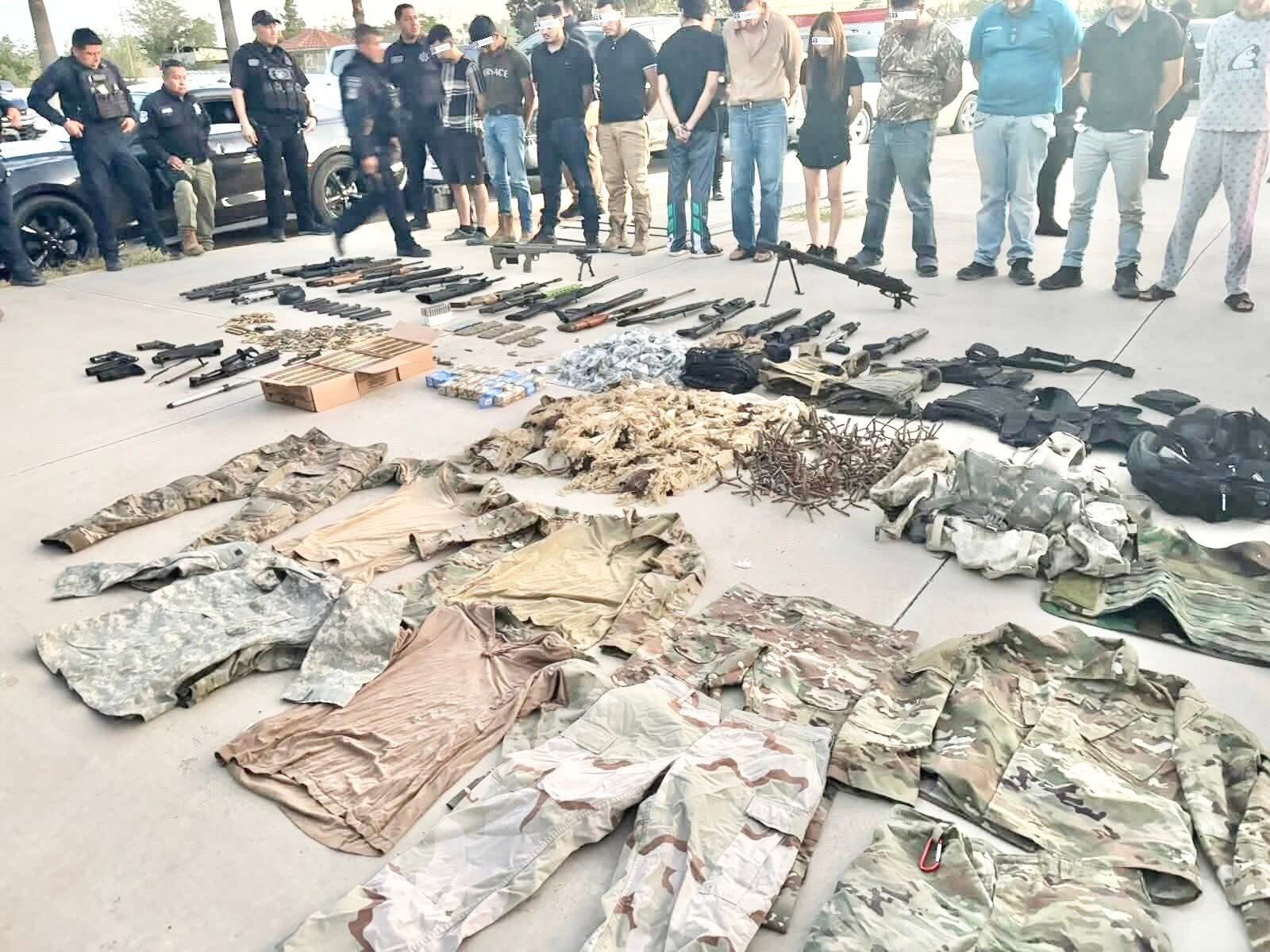 También decomisaron piezas de armas, cartuchos de diversos calibres, uniformes camuflados y chalecos y cascos balísticos.