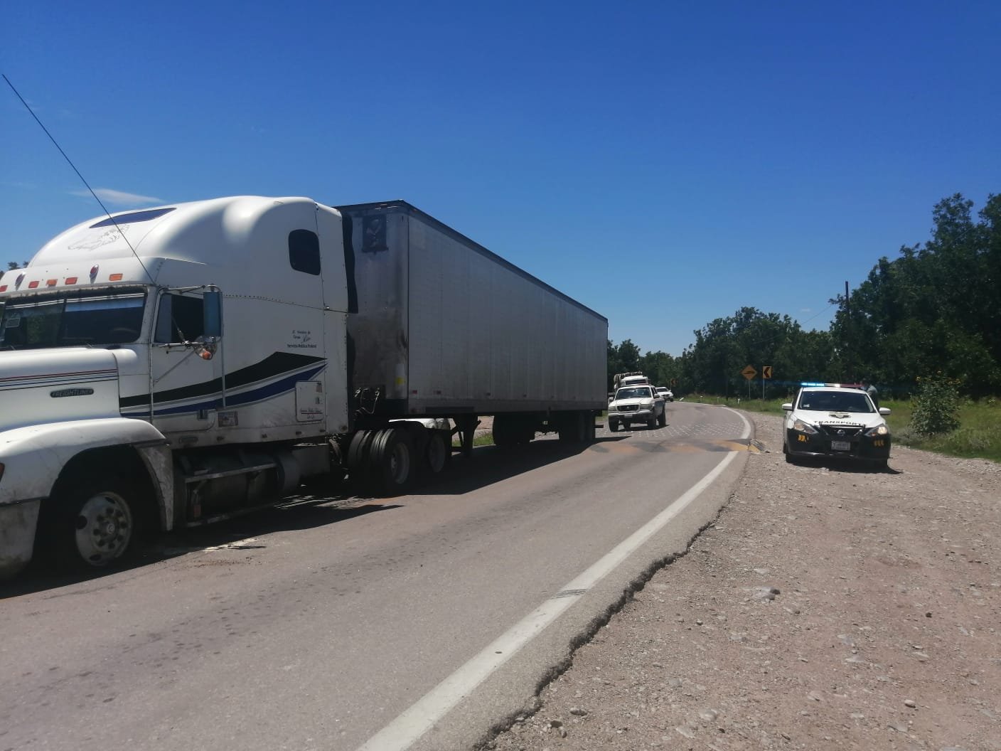 Elementos de transporte del gobierno del estado inspeccionaron la caja y se percataron que viajaba sin carga.
