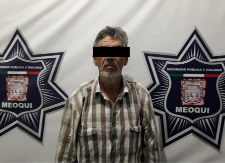 En lugar se entrevistó al jefe de cuadrilla, que responde al nombre de Mariano Alejandro S. P. de 23 años de edad, con domicilio en Ciudad Meoqui, quien nos señala que el presunto responsable viste pantalón de mezclilla color azul, camisa a cuadros rojos y gris, botas militares y gorro color azul, de complexión delgada, de aproximadamente 1.70 Mts. de estatura, de edad aproximada 60 años, el cual estaba en el lugar, al cual se le realizó la lectura de derechos, dijo llamarse J. U. R. de 60 años de edad, quedando como presunto responsable del delito de lesiones dolosas, aplicando los candados de mano y abordado en la unidad 118 para ser trasladado a comandancia de policía para ser puesto a disposición del Ministerio Publico.
