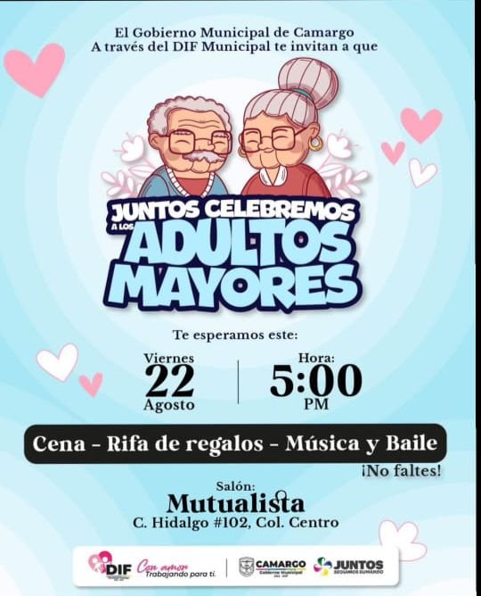 El DIF Municipal de Camargo celebrará este viernes 22 de agosto el Día del Adulto Mayor, con un evento preparado especialmente para reconocer a quienes han contribuido al desarrollo de la comunidad y promover el respeto hacia sus derechos.