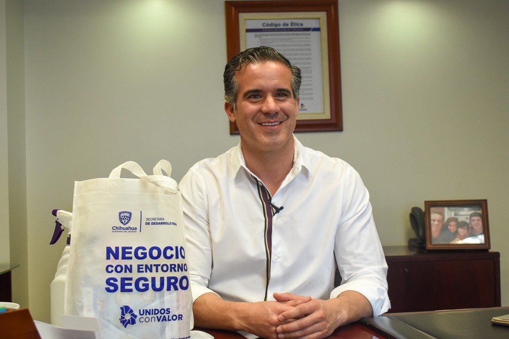 Chihuahua.- Gobierno del Estado a través de la Secretaría de Desarrollo Social, con una inversión de 10 millones de pesos, implementó el plan de apoyo “Negocio con Entorno Seguro”, para entregar 15 mil kits de sanitización a pequeños comercios en las colonias, informó el titular de la dependencia estatal, Luis Aguilar Lozoya.