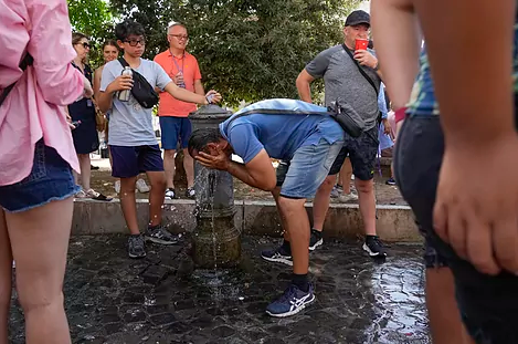 “He comprado un mini ventilador, un paraguas y botellas de agua”, se lamentaba Lilu Da Costa Rosa, una brasileña de 48 años que visitaba Roma ayer, entrevistada por la agencia Afp. A pesar del termómetro, miles de personas desafiaron el domingo al calor para escuchar la tradicional oración del Ángelus. Entre ellos, François Mbemba, un sacerdote congoleño de 29 años: “Este calor se prolonga hasta bien entrada la noche, y nos cuesta dormir. Y como vamos vestidos de negro, sudamos a mares. Nos cuesta adaptarnos, hace más calor que en África, en la República Democrática del Congo”, afirmaba. “El aumento generalizado de las temperaturas se debe a la ola de aire muy caliente que viene directamente de África”, decía, dándole la razón, el meteorólogo Mattia Gussoni, al ‘Corriere della Sera’.
