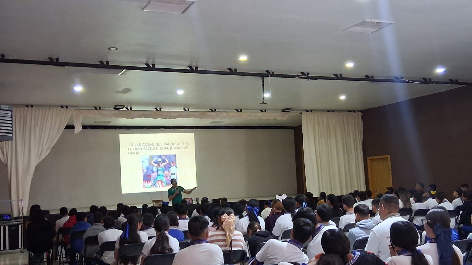 El atleta chihuahuense destacó la importancia de creer en uno mismo y perseverar a pesar de las dificultades, alentando a los estudiantes a perseguir sus sueños con determinación.
