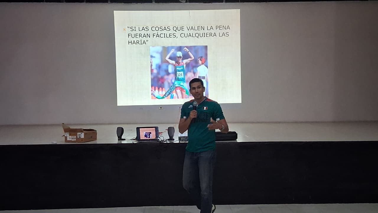 Durante su intervención, Nava Reza relató parte de su trayectoria deportiva, los retos que ha enfrentado en su carrera y cómo la disciplina, la constancia y los valores son fundamentales para alcanzar cualquier meta.