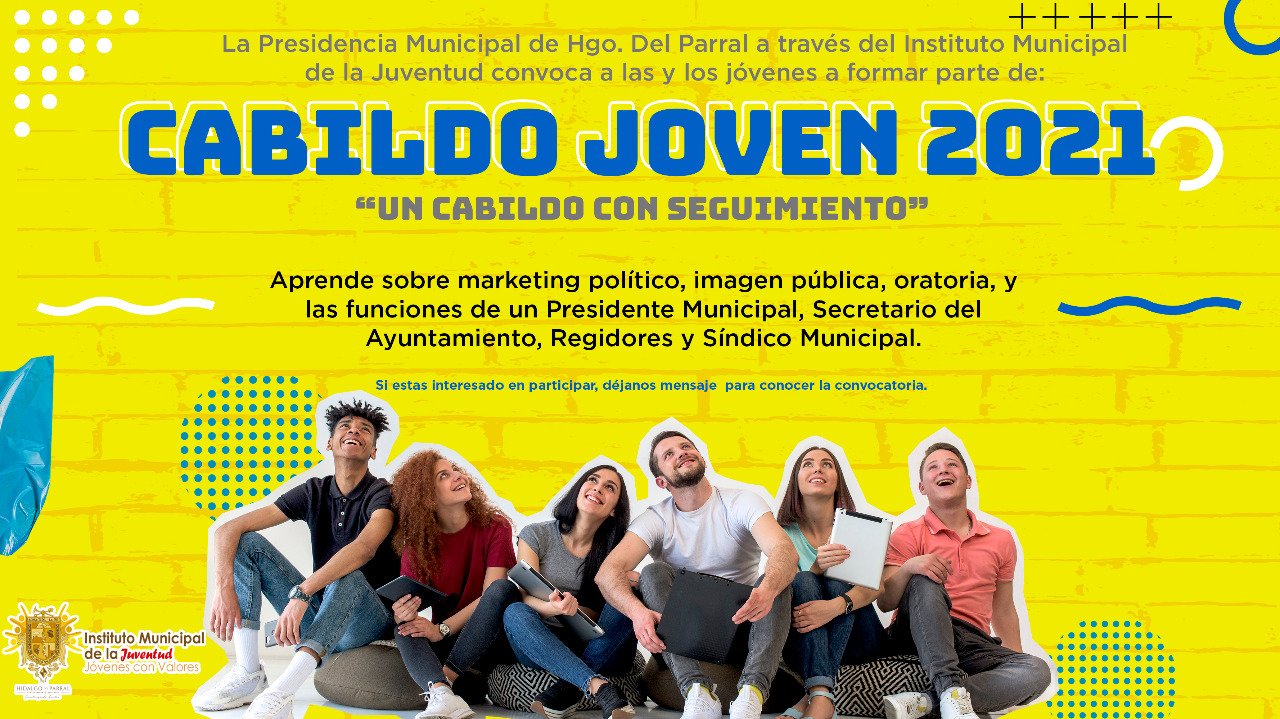 Con el objetivo de fomentar el interés de las y los jóvenes en las funciones que se llevan a cabo al interior del H. Ayuntamiento de Parral así como en el desarrollo de políticas públicas en beneficio de la ciudadanía, el Instituto Municipal de la Juventud, invita a participar en el Cabildo Joven 2021 “Un Cabildo con Seguimiento” .