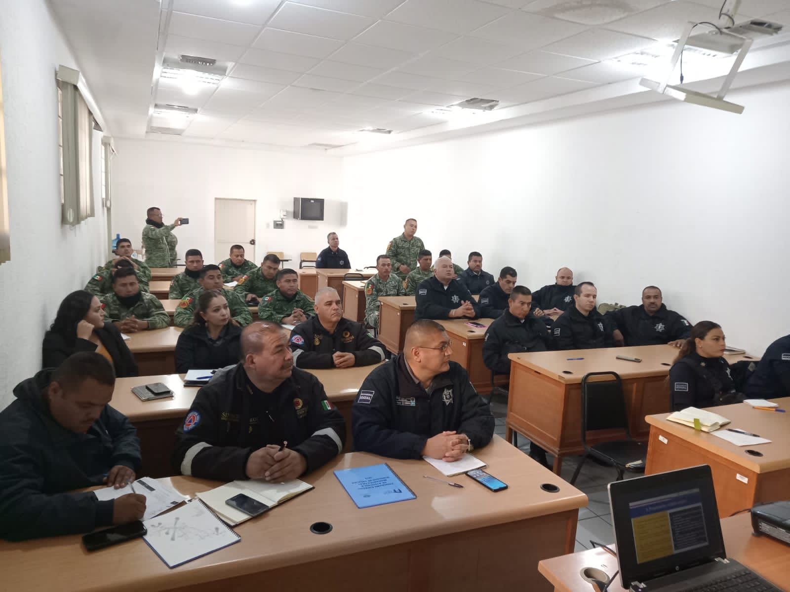 Por instrucción del Alcalde Jesús Valenciano, se capacitó a elementos de la Dirección de Seguridad Pública Municipal, donde también participó personal de la Guardia Nacional y del Ejercito Mexicano, a fin de conocer los protocolos en apoyo al migrante.