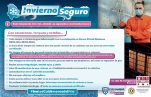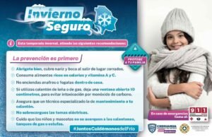 Finalmente se exhorta a vestir varias capas de ropa, no exponerse a cambios bruscos de temperatura, cubrir boca y nariz, así como poner especial cuidado en menores de edad, adultos mayores y personas vulnerables, en caso de emergencia llamar al 9-1-1.