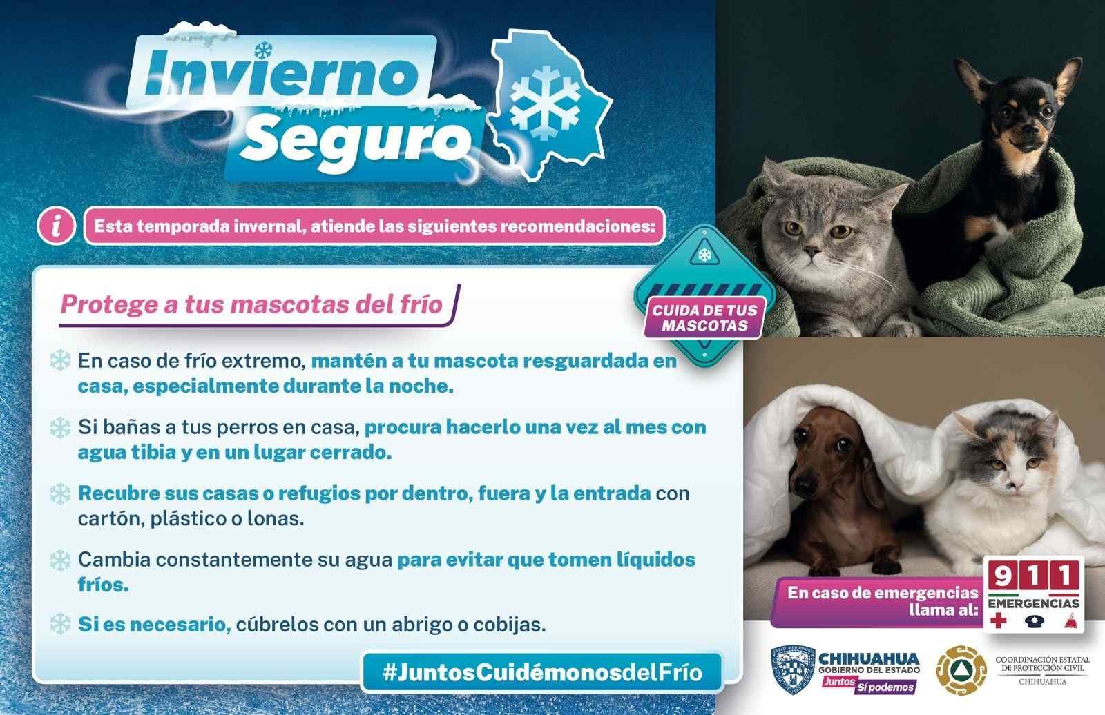 Finalmente se exhorta a vestir varias capas de ropa, no exponerse a cambios bruscos de temperatura, cubrir boca y nariz, así como poner especial cuidado en menores de edad, adultos mayores y personas vulnerables, en caso de emergencia llamar al 9-1-1.