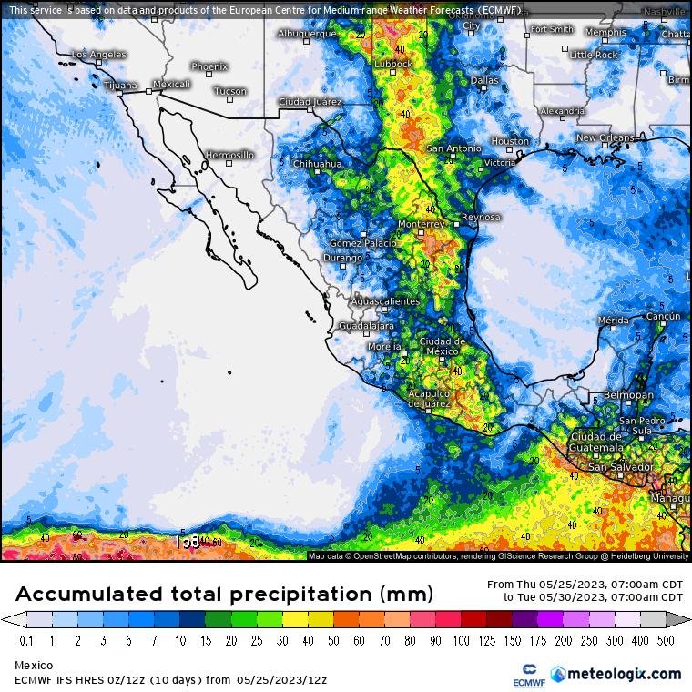 Estas condiciones climáticas pudieran traer consigo actividad eléctrica y caída de granizo, debido a la presencia de una línea seca sobre el norte de México sumada a una corriente en chorro en interacción con inestabilidad en la atmósfera superior, un canal de baja presión y el ingreso de humedad procedente de ambos litorales.