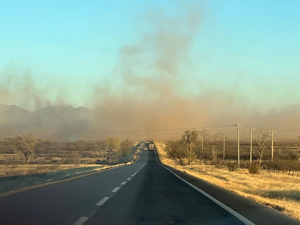 4.- Incendio de maleza en el rancho Las Campanas, kilómetro 81 de la carretera Chihuahua-Juárez.