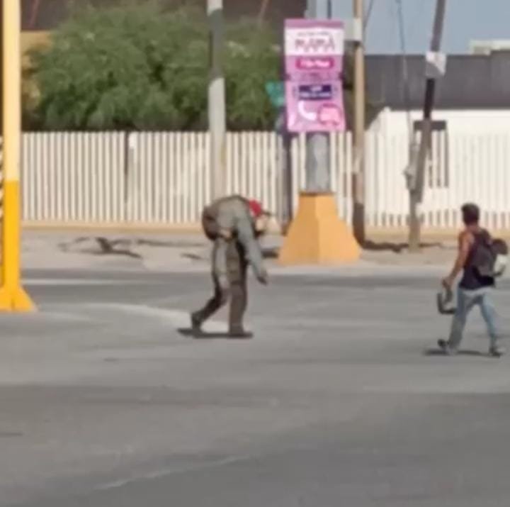 El noble gesto del hombre hizo que sus compañeros lo grabaran y compartieran el video en redes sociales, donde se puede observar como cargó a la persona en brazos para ayudarlo a cruzar.