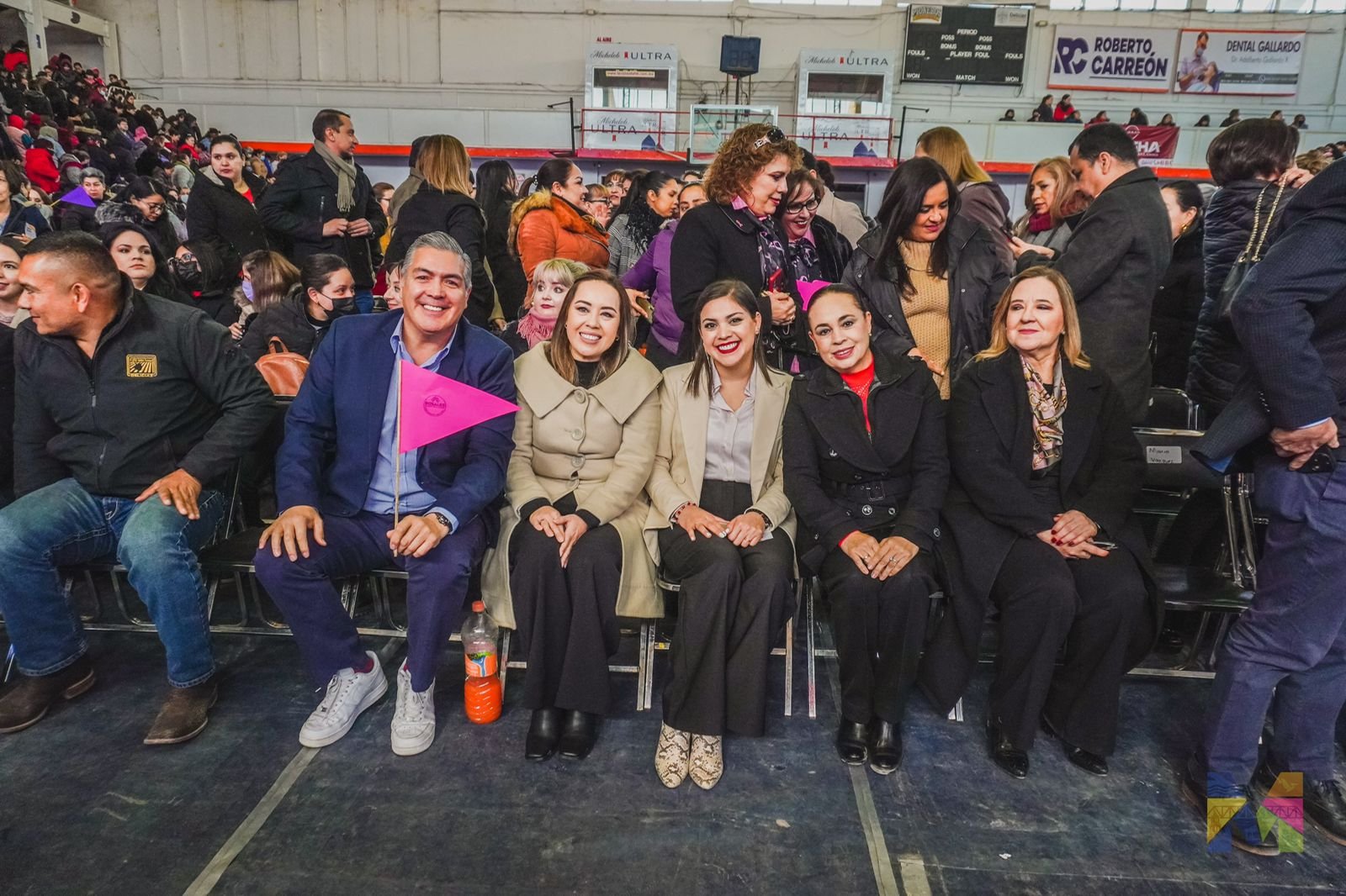 La alcaldesa de Meoqui acompañó a María Eugenia Galván, presidenta del DIF Estatal, en el relanzamiento de la Tarjeta Morada