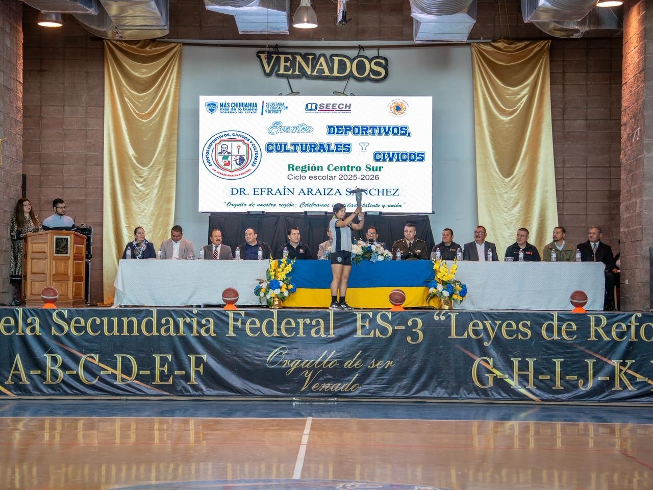 Asimismo, exhortó a las y los participantes a disfrutar cada momento, competir con respeto y dar lo mejor de sí, recordándoles que el verdadero triunfo no solo está en ganar, sino en el esfuerzo, la constancia y el trabajo en equipo. Recalcó que las juventudes son el presente de la región centro-sur y que su preparación marcará el rumbo de Delicias y de todo el estado de Chihuahua.