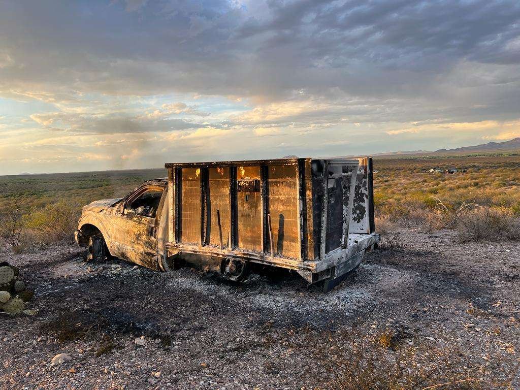 Durante el patrullaje sobre la brecha que conduce al basurero municipal se localizaron dos vehículos incinerados una camioneta tipo pick up de la marca Dodge, línea RAM, doble cabina y un vehículo de la marca Ford, doble rodado, línea F350, así como vehículos que presentan daños por proyectiles de arma de fuego.