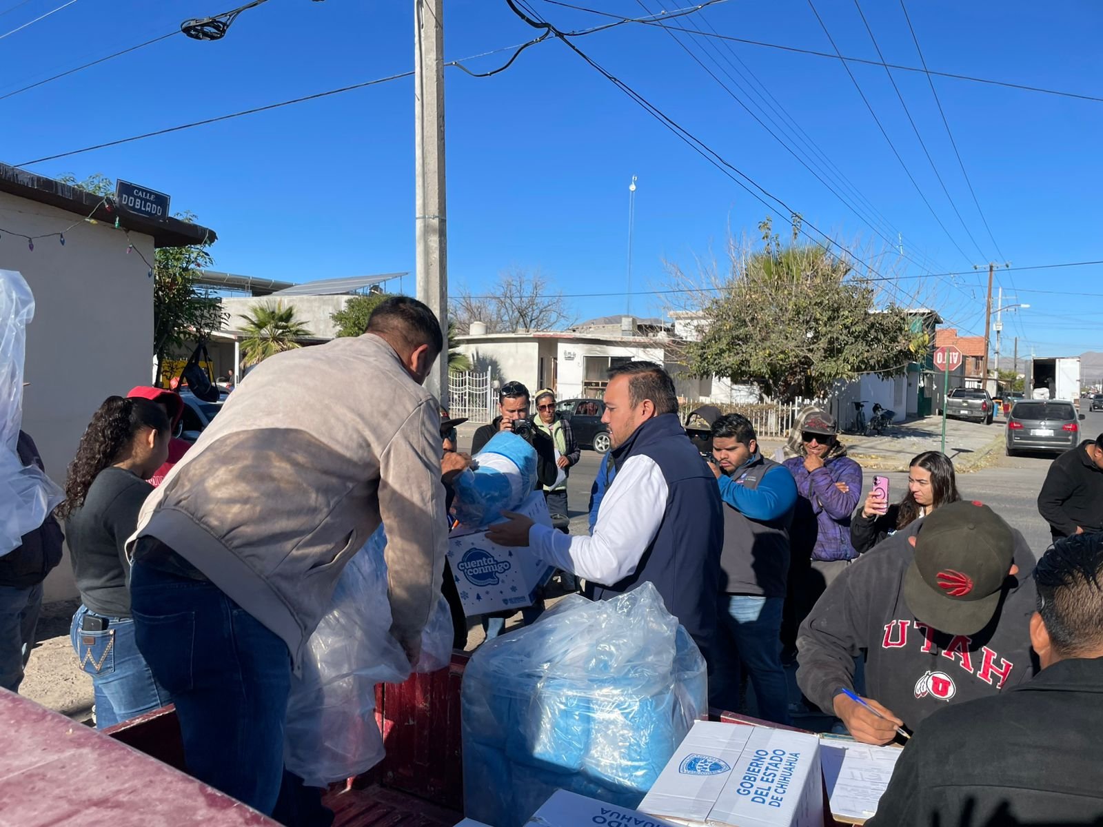 El presidente municipal de Camargo, Jorge Aldana, encabezó la entrega de alrededor de 30 despensas y cobijas a trabajadores de la Báscula Meléndez, como parte de las acciones de apoyo social que el Ayuntamiento realiza durante esta temporada.