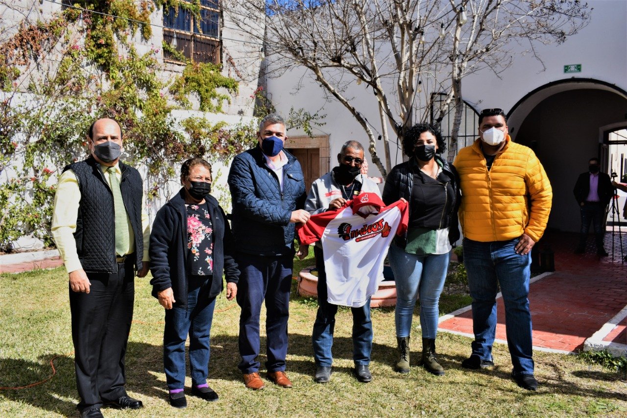 Esta tarde se dio la entrega de uniformes deportivos a diferentes equipos participantes de la liga municipal de béisbol en su categoría invernal, son 7 equipos participantes en esta liga, hoy los representantes de estos mismos se dieron cita en el recinto “Casa Juárez”, escenario que recibió a los equiperos, así como, a diferentes representantes de los medios de comunicación.