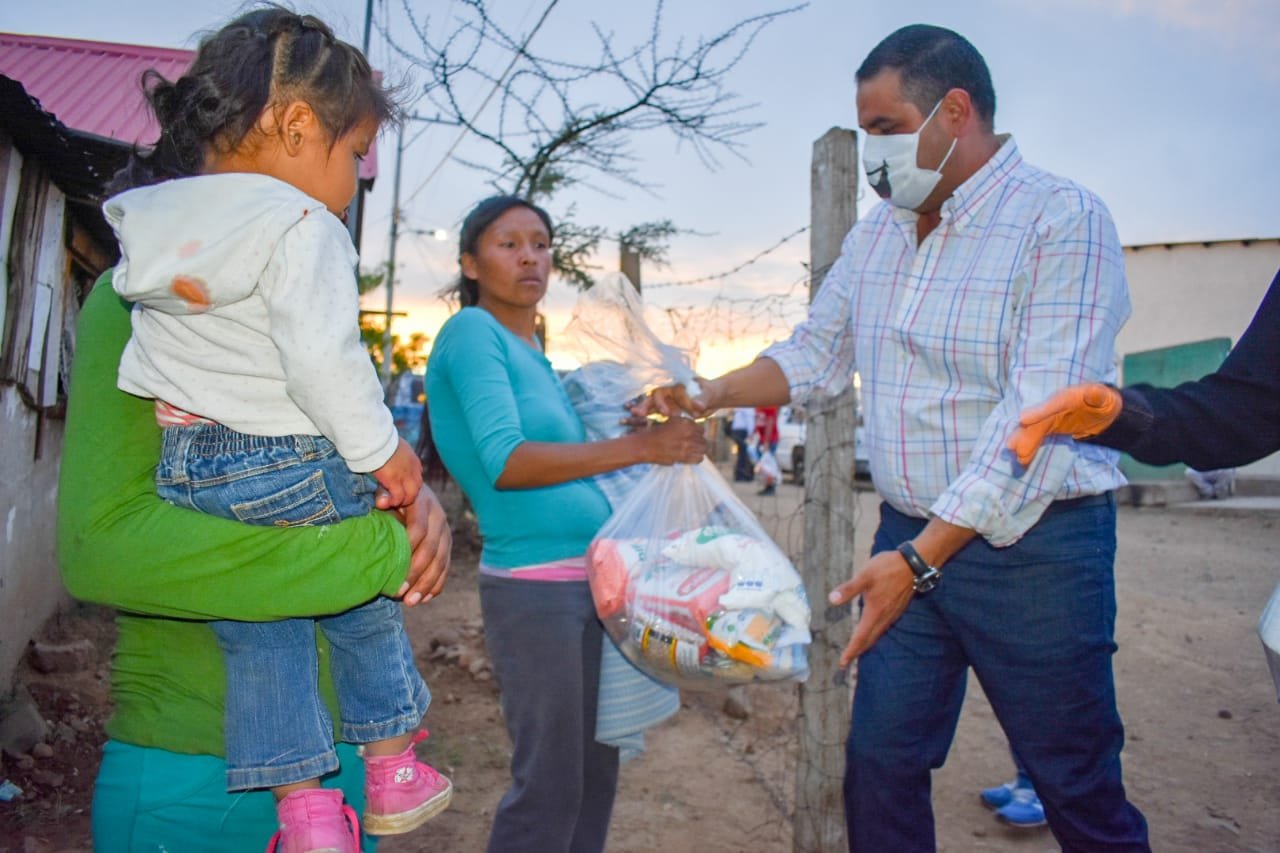 Parral.- Con el fin de que la comunidad Indígena del albergue San Andrés, tenga los recursos necesarios para afrontar la contingencia provocada por el COVID-19, el alcalde Alfredo Lozoya Santillán y su esposa Sol Sánchez de Lozoya realizaron la entrega de kits de limpieza así como apoyos alimentarios.