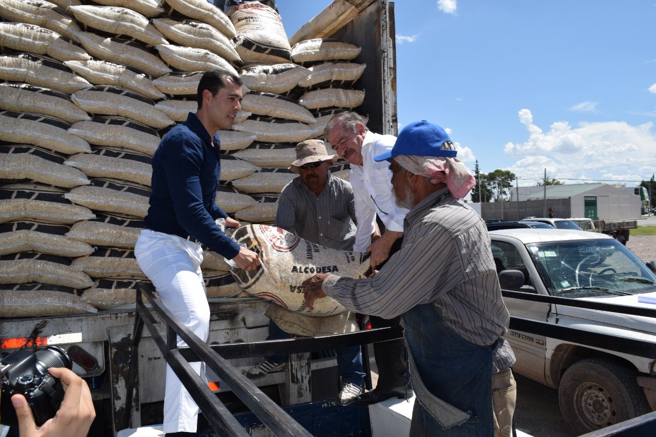 El encargado de la entrega fue el titular de la Secretaría, Rubén Chávez Villagrán y el alcalde Jorge Apodaca Chávez, que hicieron la parte simbólica con los productores.