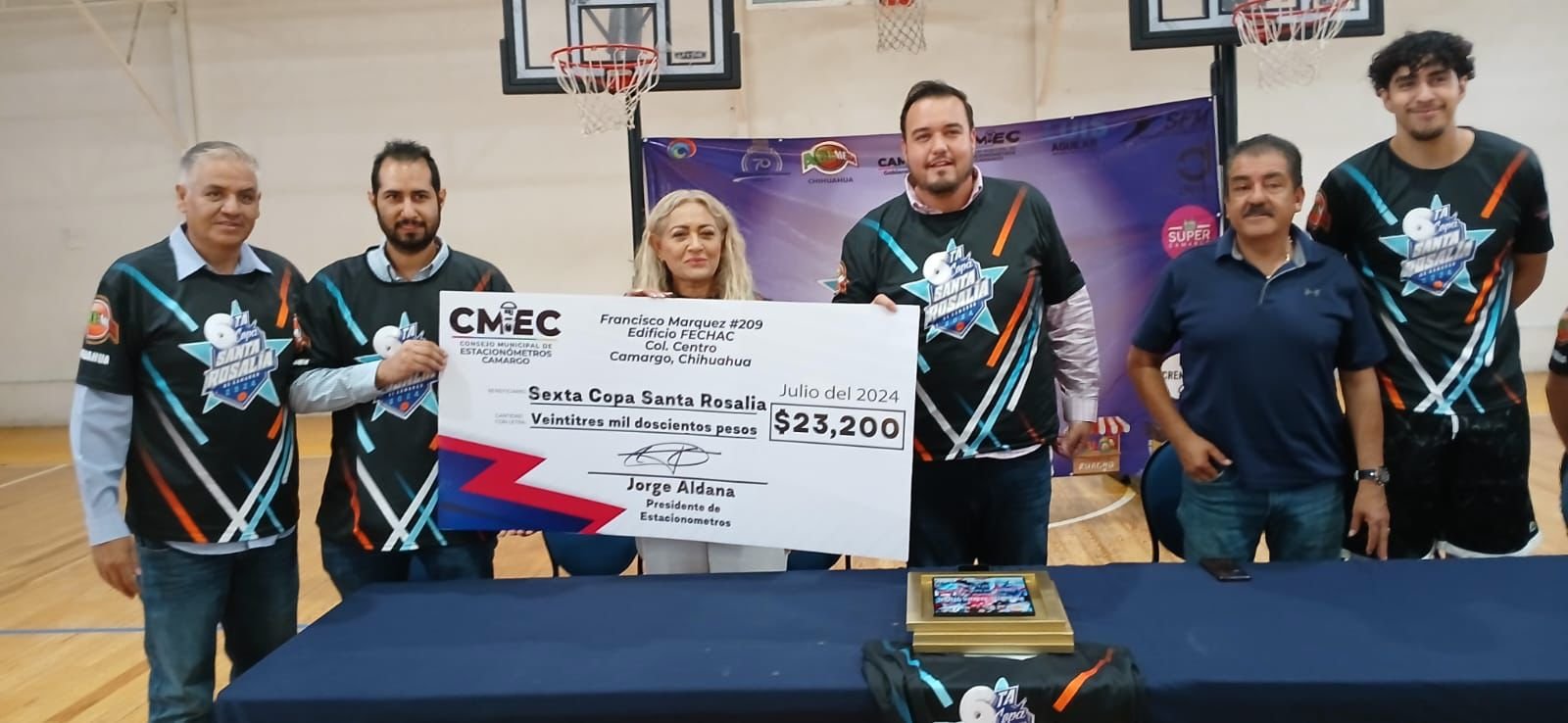 Estacionómetros Camargo ha entregado un apoyo de 23 mil pesos para la organización del torneo de basquetbol “Copa Santa Rosalía”. Esta colaboración fue aprobada por el Consejo Local de Estacionómetros, que considera este evento como un valioso impulso al deporte local, así como una oportunidad para fortalecer la economía de Camargo y proyectar la ciudad como un importante centro de encuentros deportivos.