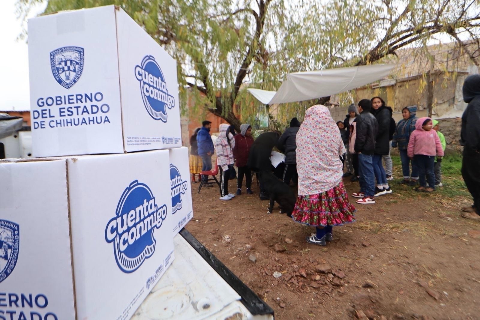 El Gobierno del Estado, a través de la Secretaría de Pueblos y Comunidades Indígenas (SPyCI) llevó paquetes de cobijas y hule, a familias rarámuri de la colonia Desarrollo Urbano.