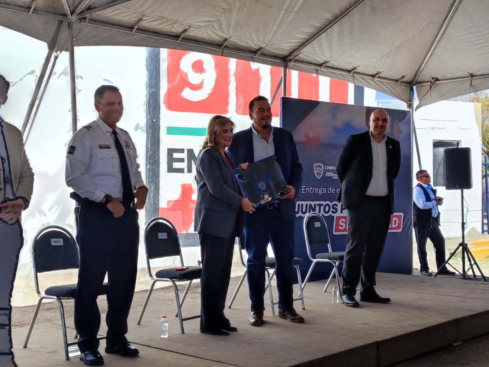 En presencia del presidente municipal, Jorge Aldana, el secretario de Seguridad Pública del estado, Gilberto Loya, entre otros funcionarios, la gobernadora Maru Campos realizó la entrega de equipamiento táctico.