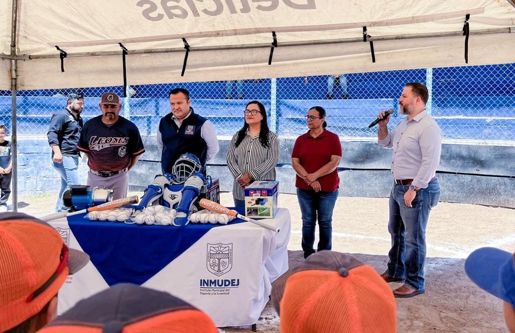 Como muestra de su respaldo a esta liga, el regidor realizó la donación de cuatro docenas de pelotas de béisbol, apoyo que contribuirá directamente al desarrollo de la temporada y al buen desempeño de los equipos participantes.