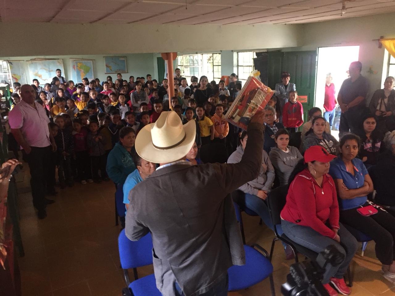Camargo.- En su visita al seccional “La Perla”, este jueves, el presidente municipal, Arturo Zubía Fernández, hizo entrega del paquete de útiles escolares a estudiantes de la comunidad.