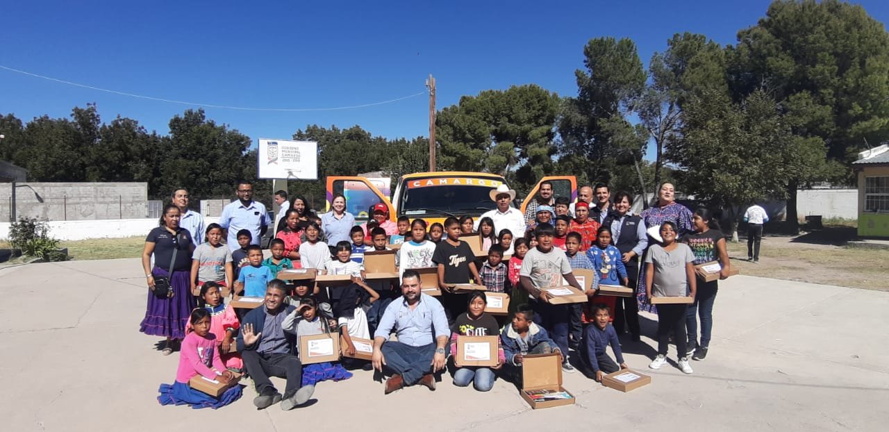 Camargo.- Como resultado de las gestiones de la gobernadora de la etnia tarahumara en la localidad, esta mañana el Presidente Arturo Zubía entregó esta mañana un vehículo de transporte escolar a la primaria Luis Donaldo Colosio, para facilitar el traslado de las y los niños que cursan su educación en este plantel.