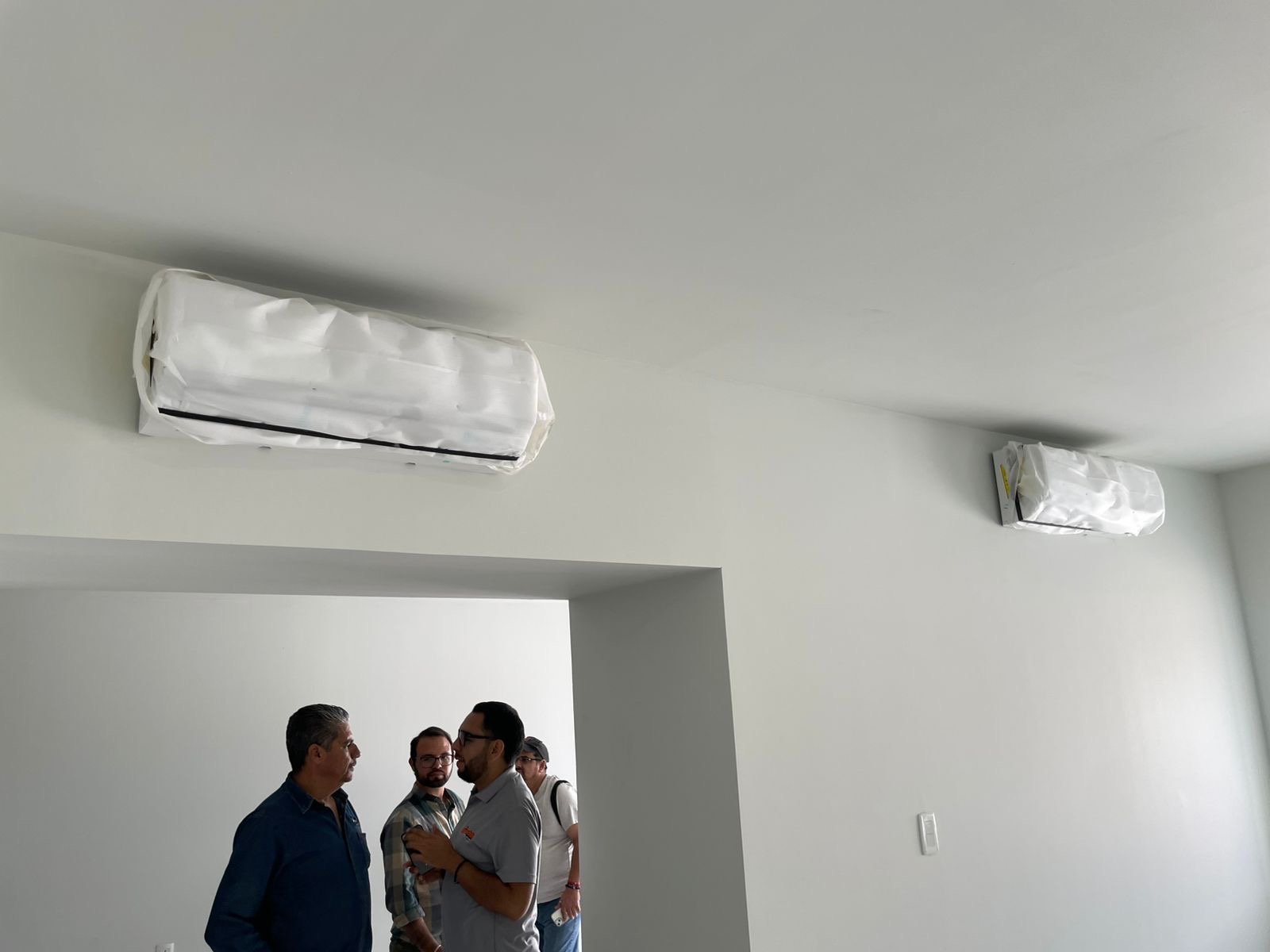 Durante un recorrido por las instalaciones, el alcalde destacó que prácticamente todo el equipamiento ya se encuentra instalado, incluyendo sistemas de aire acondicionado tipo mini split en distintas áreas como la entrada, cocina y baños, además de nuevos ventiladores que fueron donados por la ciudadana Lourdes Santana y su familia.