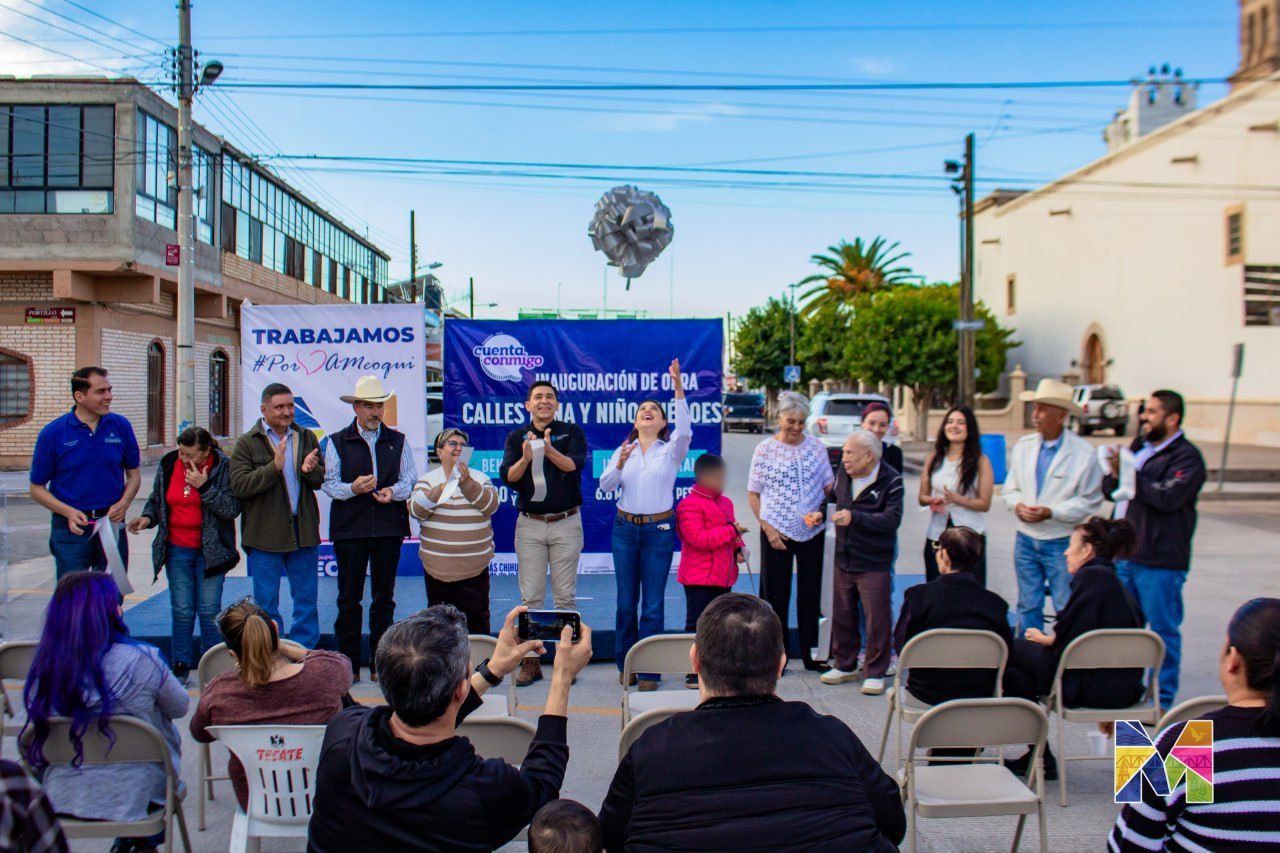 Entregan Miriam Soto y JMAS pavimentación de calles Mina y Niños Héroes en el centro de Meoqui