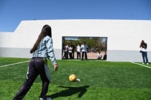 -Con la construcción de una cancha de futbol rápido y una techumbre de estructura metálica, se beneficia a 600 estudiantes