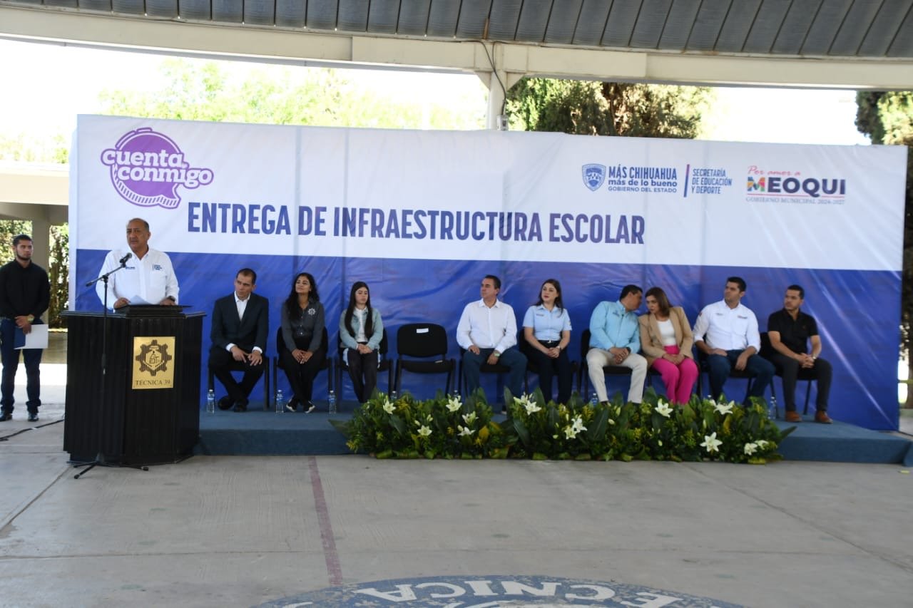 La Secretaría de Educación y Deporte (SEyD), en colaboración con el Ayuntamiento de Meoqui, entregó infraestructura escolar en dos planteles de nivel Básico del municipio, en beneficio de 600 alumnas y alumnos.